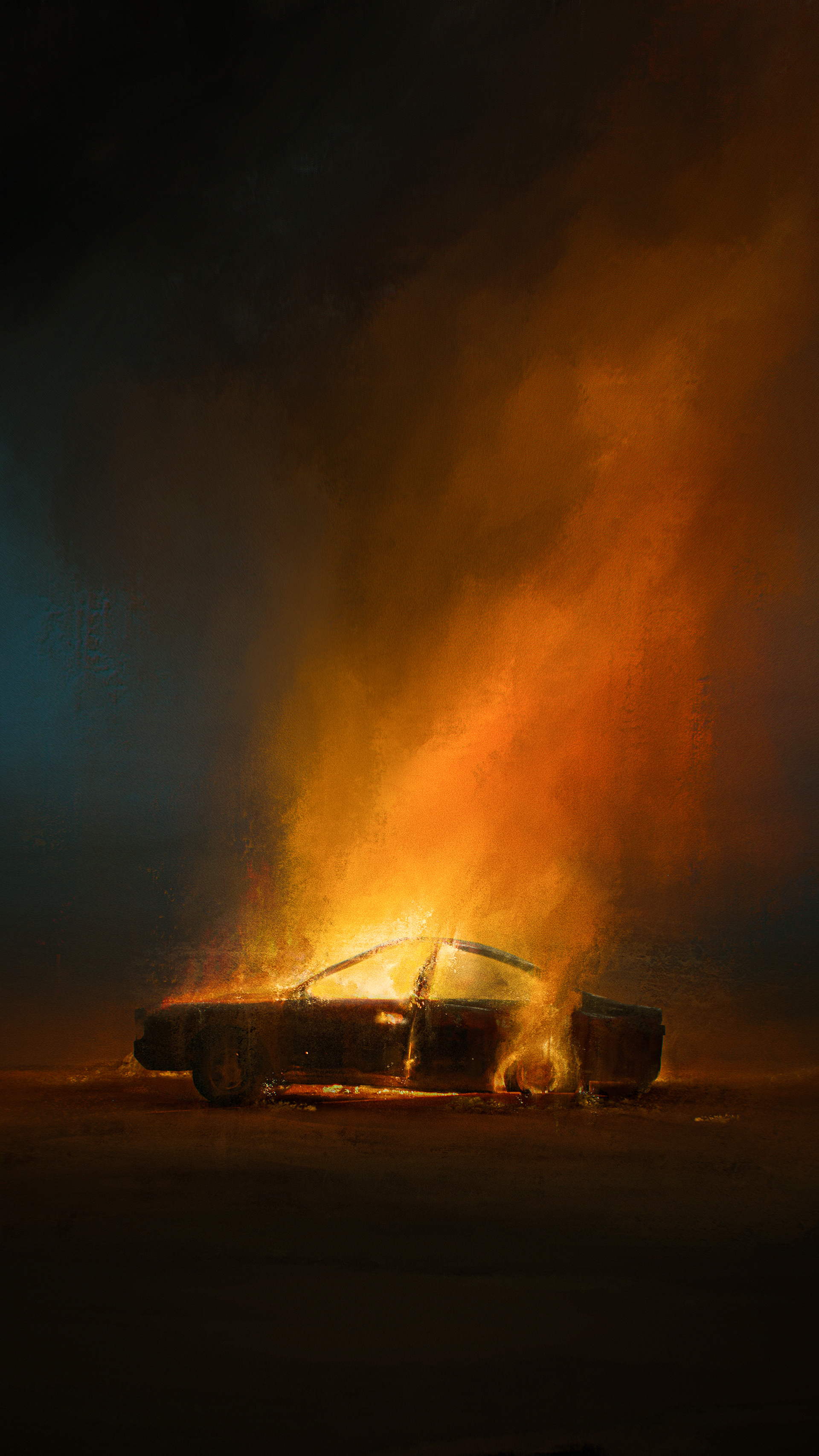 A car on fire, 1312, let the title speak for itself.